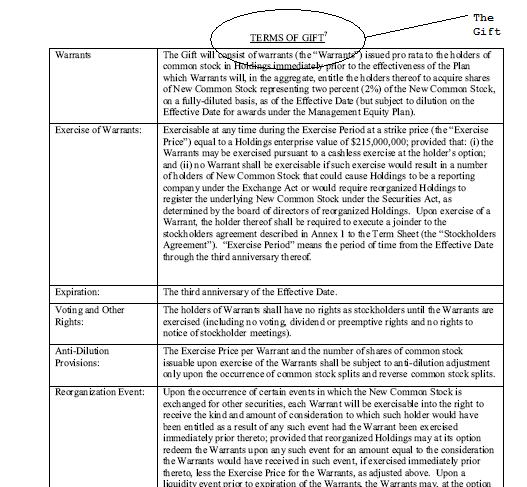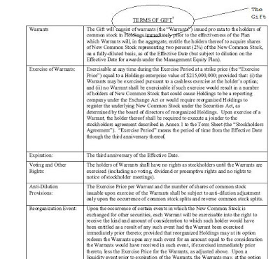 The Management Equity Plan will provide for a certain percentage of New Common Stock, not to exceed eight percent (8%) of the fully diluted New Common Stock, to be reserved for issuance as options, equity or equity-based grants in connection with the Reorganized Debtors’ management equity incentive program and/or director equity incentive program. The amount of New Common Stock, if any, to be issued pursuant to the Management Equity Plan, and the terms thereof shall be determined by the New Board on or as soon as reasonably practicable after the Effective Date.